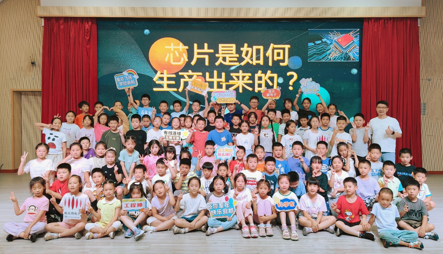 深入浅出的比喻和热烈的课堂互动,让“芯片制造”这样听起来高深莫测且晦涩难懂的技术,也能够让一群小学生们听懂并且讨论起来。“晶圆制造就像是平整土地,光刻就像是挖地基、开槽,掺杂就像是浇筑混凝土和拉管道电线,而封装测试就像是装修和验收……”简单而形象的课程,让小朋友们热情高涨。