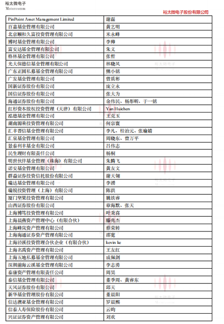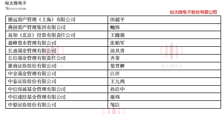 11月4日,裕太微(股票代码:688515)发布公告。公司于11月1日通过线上会议的方式,接待了包括华泰证券在内的92家机构投资者。此次线上会议为公司与投资者之间提供了一个交流的平台,使得各方能够就公司的经营状况、发展战略以及未来前景等话题进行深入的探讨和交流。(后附机构名单)