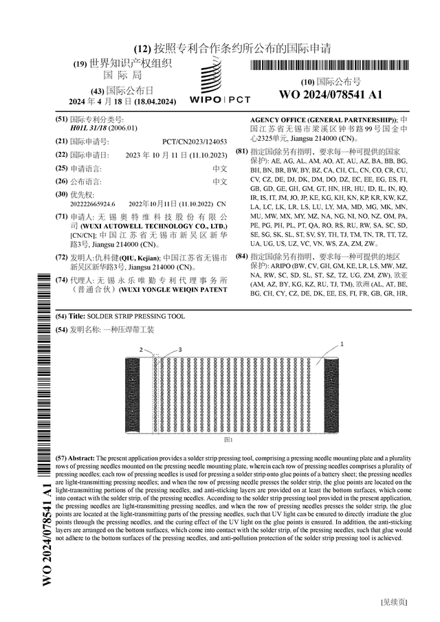 数据显示奥特维(688516)公布了一项国际专利申请,专利名为“一种压焊带工装”,专利申请号为PCT/CN2023/124053,国际公布日为2024年4月18日。