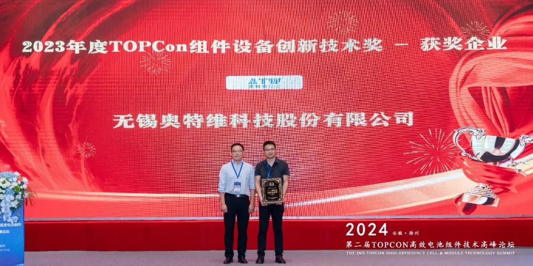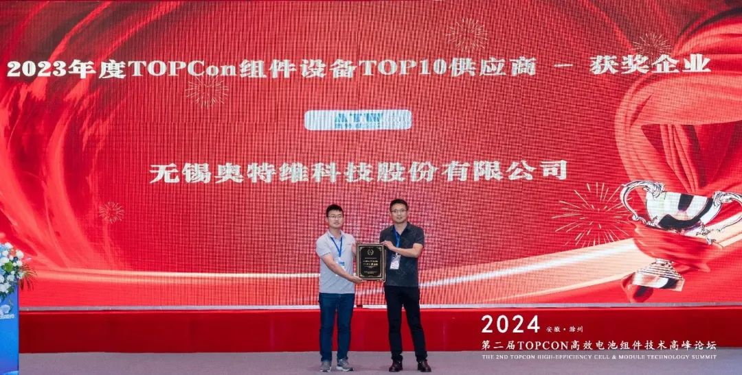 近日,第二届TOPCon高效电池组件技术高峰论坛在滁州召开,探讨和分享TOPCon电池技术的最新进展,推动光伏行业向更高效、更环保的方向发展。现场,奥特维多主栅光伏串焊机获授“TOPCon组件设备创新技术奖”、“TOPCon组件设备TOP10供应商”,彰显企业实力。