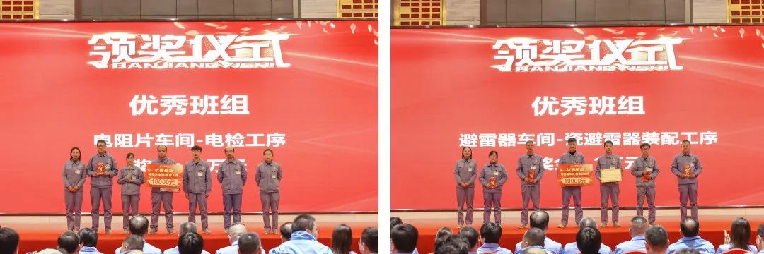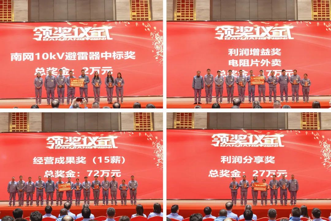 经公司评定,本次表彰共有11大类奖项,分别是:优秀团队2个、南网10kV避雷器中标奖1个、利润增益奖1个、经营成果奖1个、利润分享奖1个、生产能手13名、优秀个人9名、先进个人6名、优秀销售人员2名、新晋匠人4名、守护者2名。