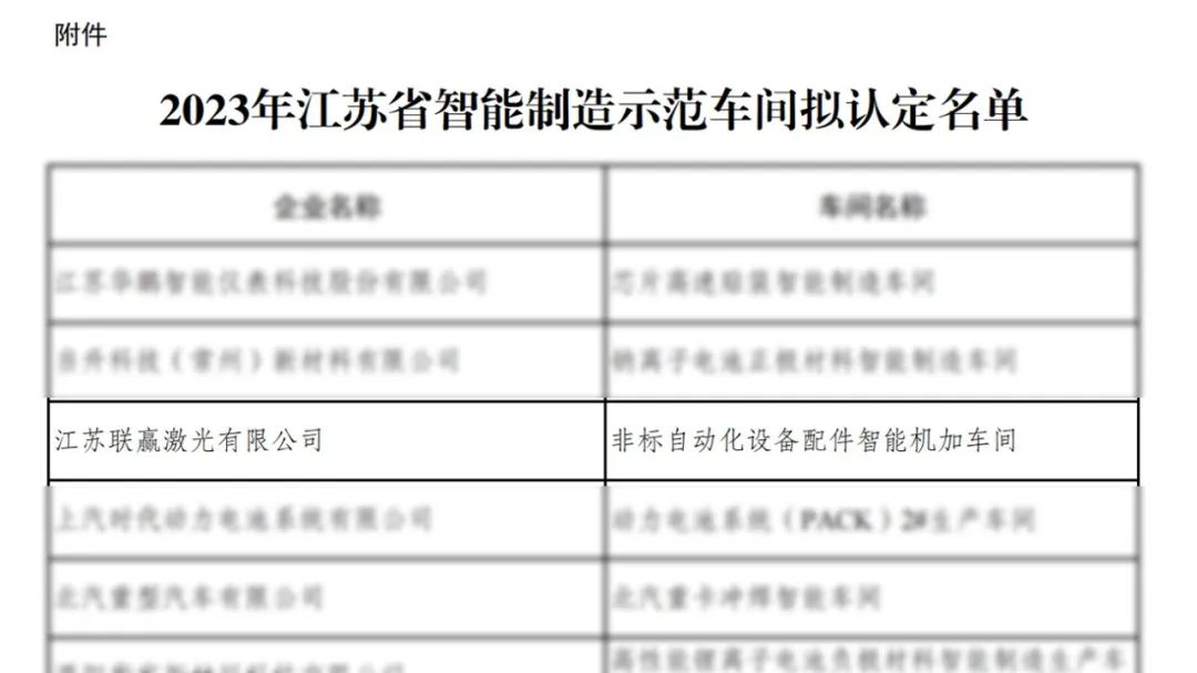 12月14日,江苏省工业和信息化厅公示2023年江苏省智能制造示范车间拟认定名单,江苏联赢“非标自动化设备配件智能机加车间”经过严格的评估和审核,成功获得了2023年江苏省智能制造示范车间的认定。这一荣誉不仅代表了政府和社会对江苏联赢在智能制造领域所取得的杰出成就的认可,更是对我司持续创新、不断进取精神的肯定。