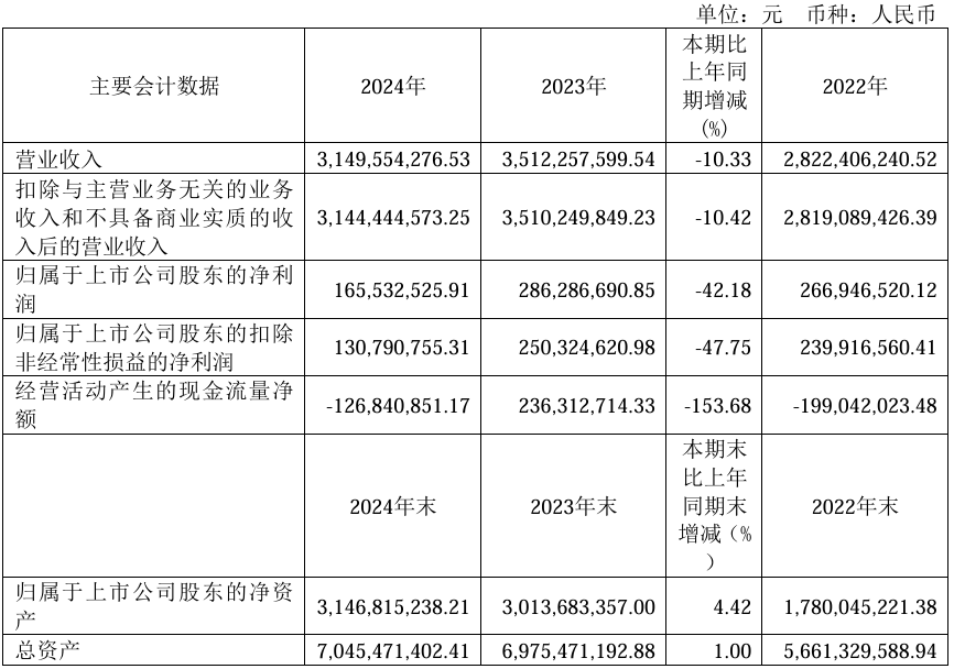 4月14日,联赢激光发布2024年度业绩报告称,该年度公司实现营业收入3,149,554,276.53元,同比下降10.33%;实现归属于上市公司股东的净利润165,532,525.91元,同比下降42.18%;归属于上市公司股东的扣除非经常性损益的净利润130,790,755.31元,同比下降47.75%。