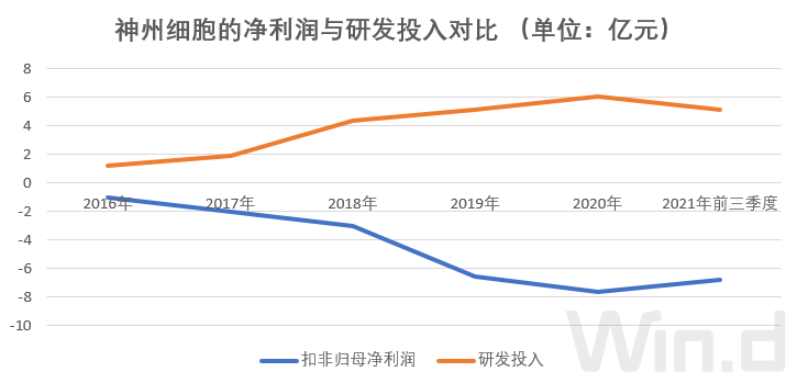 这些年神州细胞的研发费用和扣非归母净利润走上分叉的“两条路”,前者逐年增长,后者则亏损额度逐年扩大。