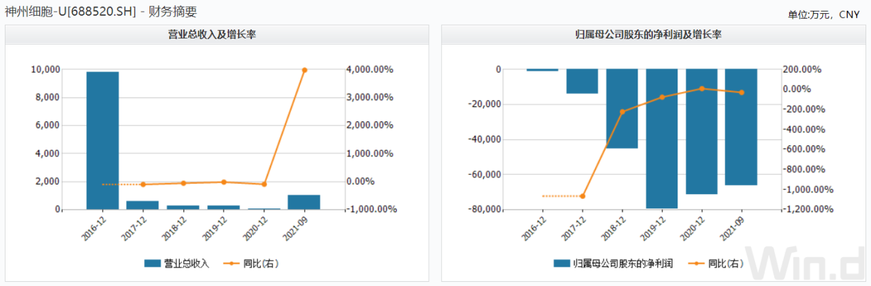 但神州细胞过去五年的业绩情况并不理想,2016年至2020年期间,公司的营业收入分别为9813万元、599万元、295万元、264万元和33万元,2017年至2020年期间同比下滑94%、51%、10%、88%;扣非归母净利润分别亏损1亿元、2亿元、3亿元、6.6亿元和7.7亿元,2017年至2020年期间归母净利润同比下滑93%、56%、106%和16%。