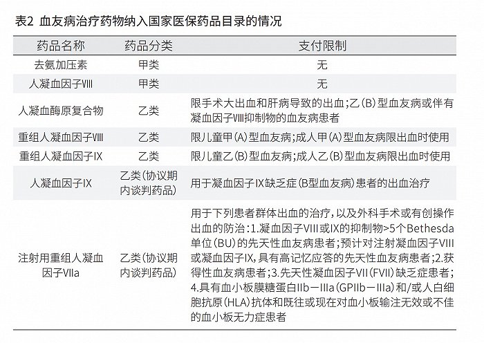为减轻患者的经济负担,我国将目前血友病的主流治疗药物均纳入医保报销范围内。其中,罕见病药物的支付范围从“按需治疗”向“预防性治疗”扩展。例如,2017年的医保目录对重组人凝血因子Ⅷ的限制从原来的“严重出血时使用”,变更为“限儿童甲型血友病;成人甲(A)型血友病限出血时使用”。
