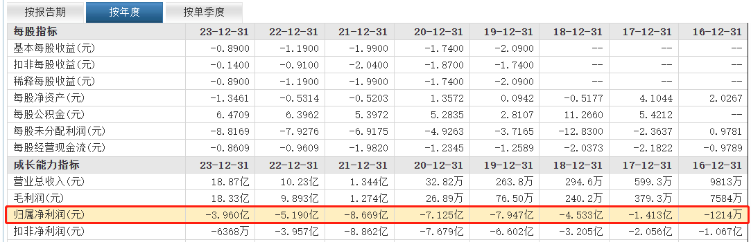 此前神州细胞连亏8年。2016年至2023年,神州细胞归属于上市公司股东的净利润分别为-0.12亿元、-1.41亿元、-4.53亿元、-7.95亿元、-7.13亿元、-8.67亿元、-5.19亿元、-3.96亿元。
