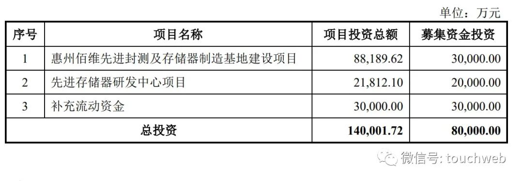 佰维存储原计划募资8亿元,3亿元用于惠州佰维先进封测及存储器制造基地建设项目,2亿元用于先进存储器研发中心项目,3亿元用于补充流动资金。