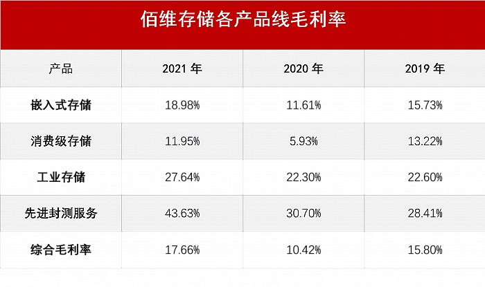 虽然公司的产品主阵地仍在消费电子领域,工业级存储、封测的总收入占比不足一成,却正处在稳定上升的爬坡阶段。2019-2021年,工业级存储产品的收入分别为8391万元、9518万元、1.06亿元。