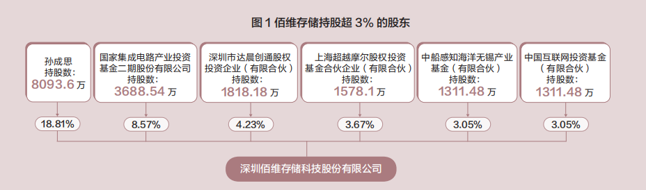 经过多轮融资后,佰维存储的股权结构逐步分散化。根据招股书显示,截至目前,佰维存储控股股东、实际控制人孙成思(孙日欣之子)直接持股18.8079%,国家集成电路基金二期持股为8.5714%,是佰维存储的第二大股东(如图1)。