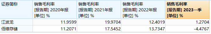 从结果看,自建封测厂的佰维存储在毛利率上并未获得太大优势, 2022年高于江波龙1.3个百分点。但随着行业景气度下降,自建封测厂反而成为拖累,佰维存储2023年第一季度毛利率变为负值。