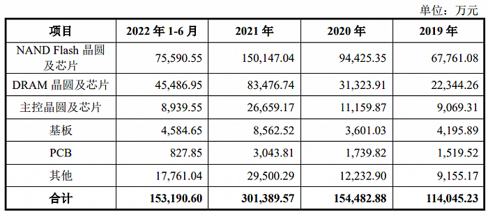 2022年上半年,佰维存储向上游采购的NAND Flash和DRAM晶圆及芯片就占公司原材料成本的79%。