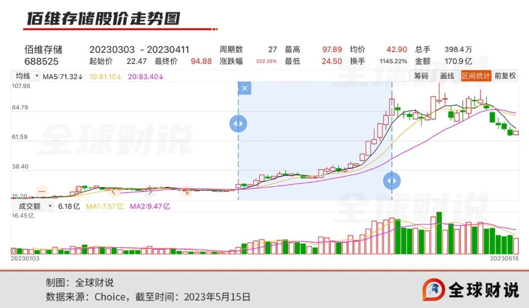 截至5月5日,佰维存储报收94.27元/股,年内涨幅高达573.84%,暂居A股年度涨幅排行榜首位,被誉为“2023年最大牛股”。
