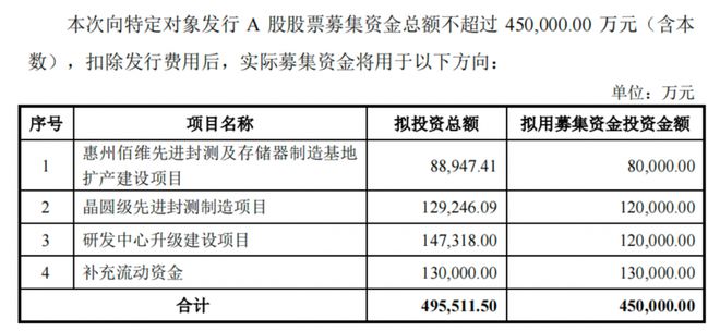 从此次定增拟投资项目来看,惠州佰维先进封测及存储器制造基地扩产建设项目和晶圆级先进封测制造项目是其中最主要的。