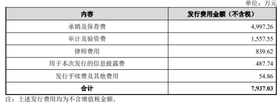 佰维存储2022年首次公开发行新股的发行费用合计7,937.03万元(不含增值税金额),其中,承销及保荐费为4,997.26万元。