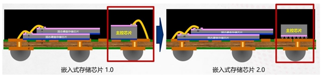 以带主控芯片的NAND存储器为例,凸块工艺可以在主控芯片上方制作凸块,然后通过倒装方式与基板连接(下图右侧)。