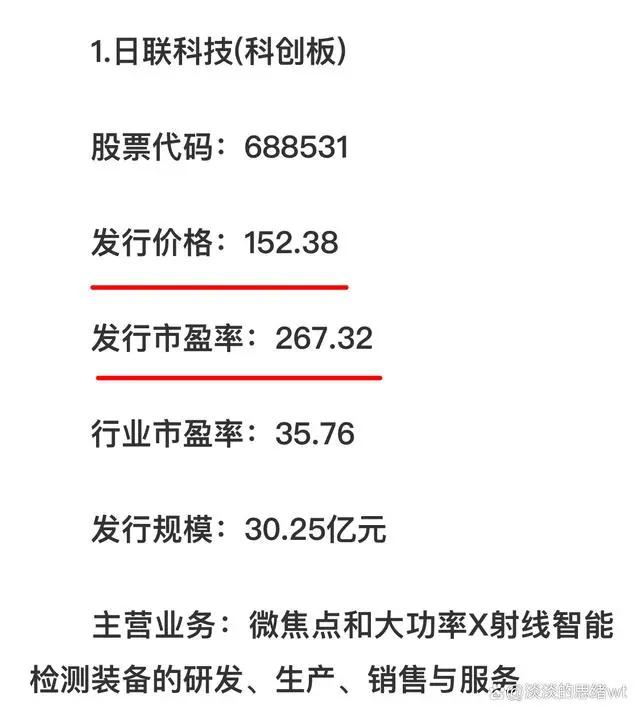 但是行业市盈率只有35倍,它超了7倍,按此计算,新股可以高一点,日联科技的股价也只能值50左右。不要对一只业绩平平的普通X射线检查设备股抱过高期望,它已经超能力发挥了。弃购的也不要后悔,如果你没弃购可能它就破发了。