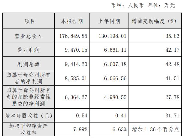 上声电子2022年度业绩快报公告显示,2022年度,上声电子营业总收入为17.68亿元,同比增长35.83%;归属于母公司所有者的净利润为8585.01万元,同比增长41.51%;归属于母公司所有者的扣除非经常性损益的净利润为6364.27万元,同比增长27.78%。