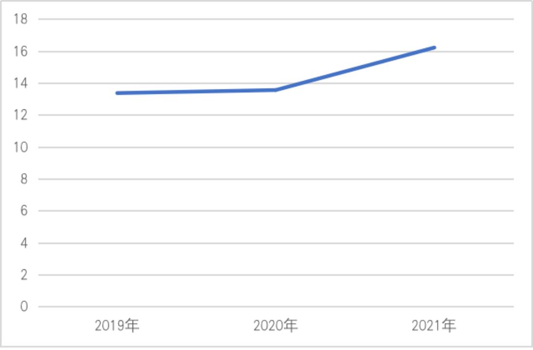 如图1所示,2019-2021年,上声电子总资产规模分别为13.37亿元、13.56亿元、16.22亿元,三年平均增长率为10.52%,企业总资产规模持续扩大。