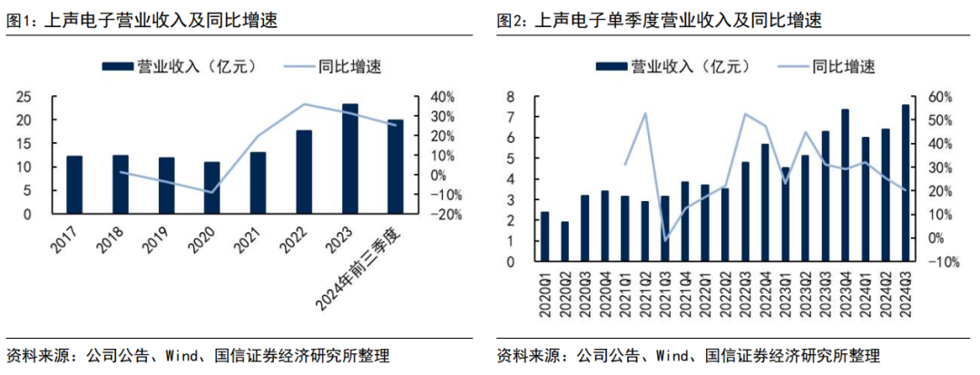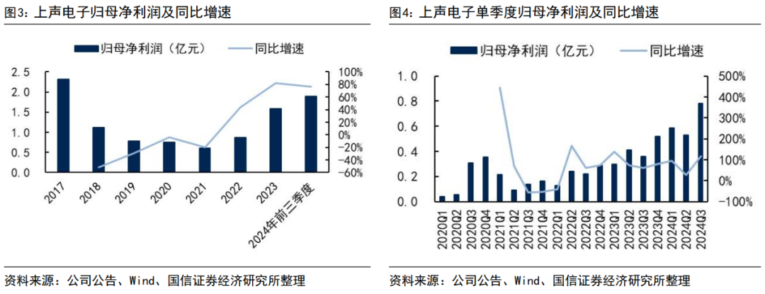2024Q3上声电子实现归母净利润0.78亿元,同比增长117%