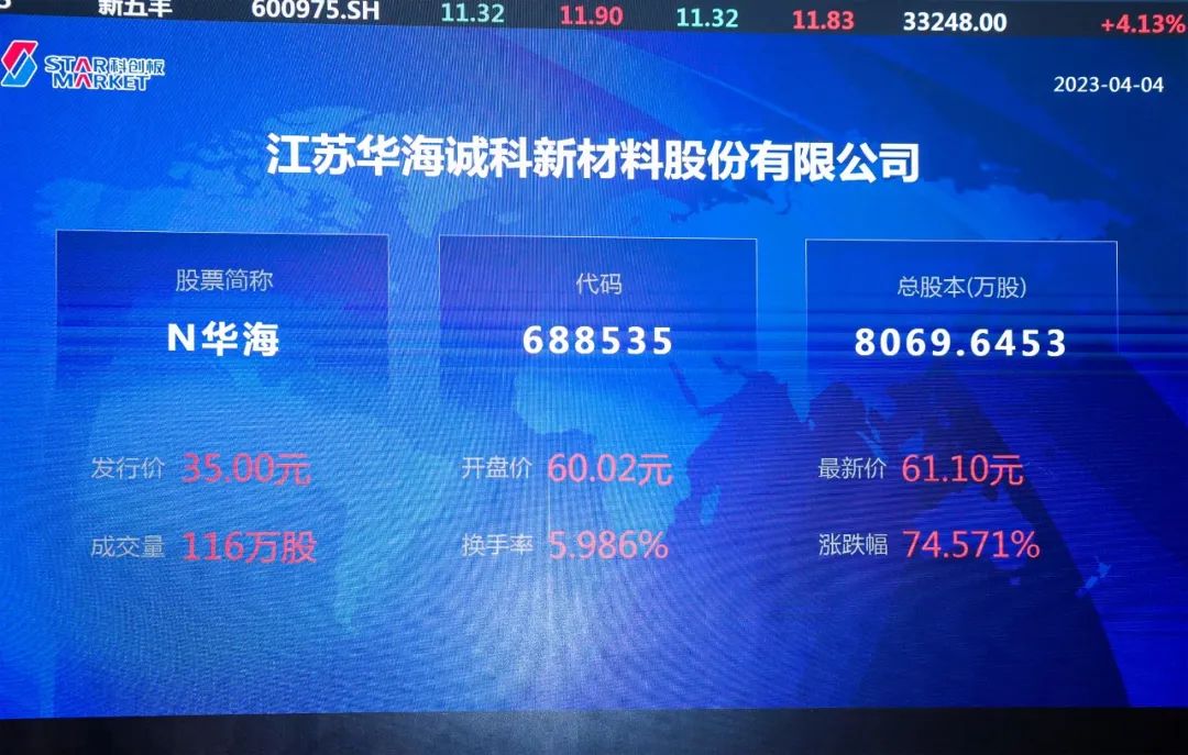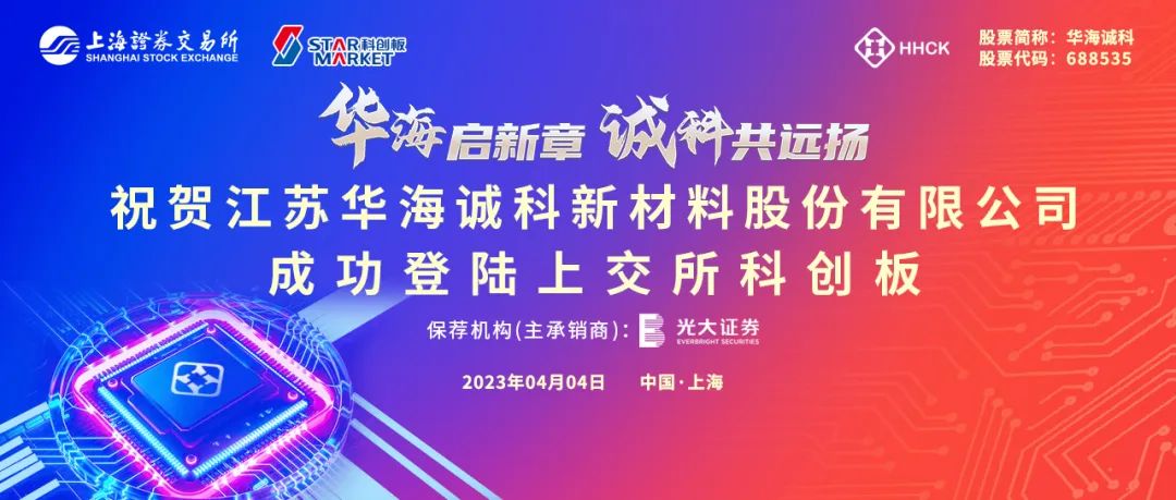2023年4月4日,江苏华海诚科新材料股份有限公司(证券代码:688535)在我所举行上市仪式。