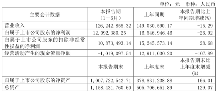 8月28日,华海诚科发布2023年半年度业绩报告称,上半年公司实现营业务收入为12,624.29万元,同比下降15.29%;归属于母公司股东的净利润为1,209.24万元,同比下降26.92%;扣非后净利润为1,087.35万元,同比下降28.68%;基本每股收益为0.17元,同比下降37.04%。华海诚科表示,用于汽车电子的高导热高可靠性产品已经完成客户考核认证,处于量产前期。