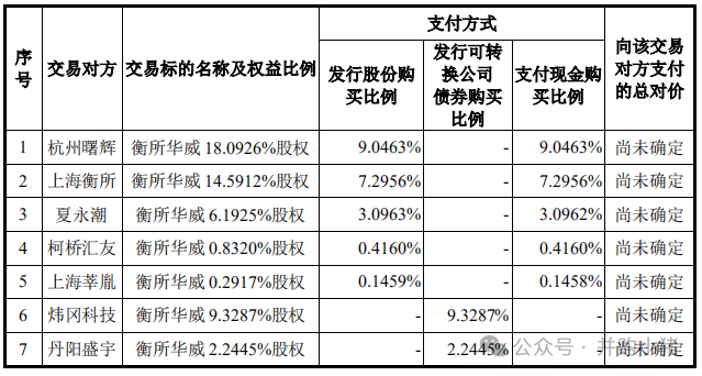 首先找到三方买家以现金收购衡所华威老股东30%股权,然后华海诚科用股份和可转换债券收购这些买家持有的衡所华威股份,最终实现三方股权交易。