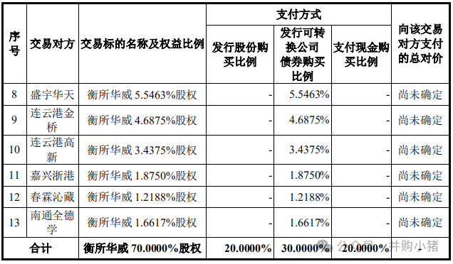 第二步,华海诚科向衡所华威收购剩余70%的股权,其中20%为现金、20%为股份、30%为可转债。