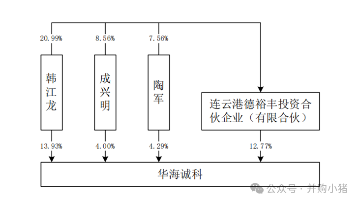 华海诚科无控股股东,实际控制人为韩江龙、成兴明、陶军。