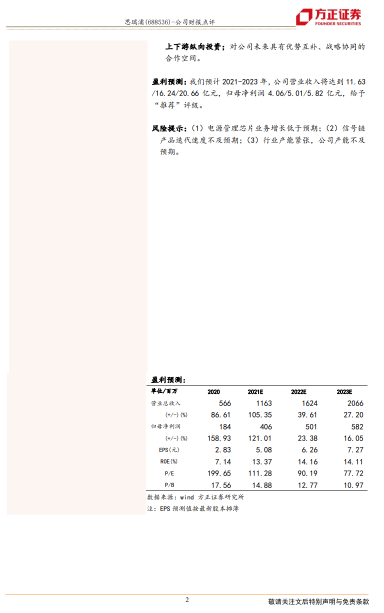 风险提示:(1)电源管理芯片业务增长低于预期;(2)信号链产品迭代速度不及预期;(3)行业产能紧张,公司产能不及预期。