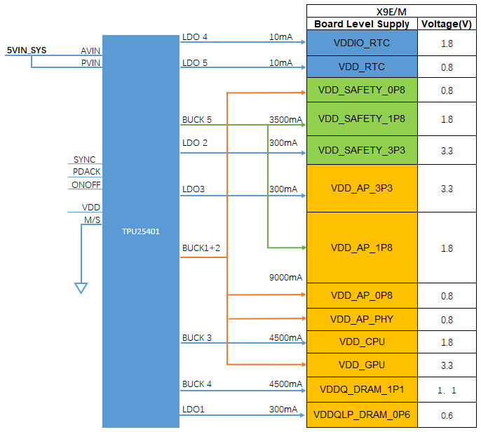 TPU25401搭配芯驰X9M的单芯片最小系统框图