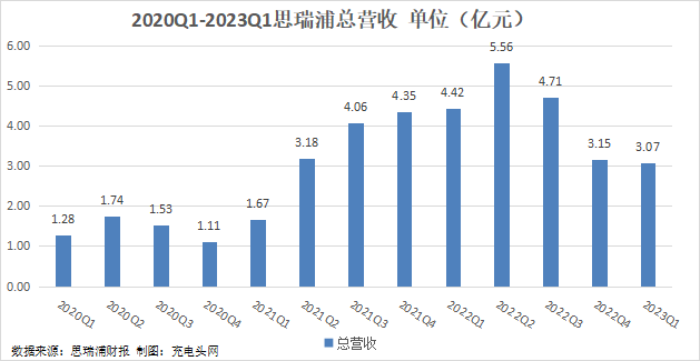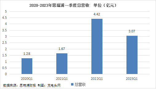 2020-2023年一季度思瑞浦分别实现总营收1.28亿元,1.67亿元,4.42亿元,3.07亿元;同比变动297.71%,30.91%,164.7%,-30.55%。