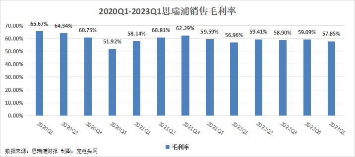 2020Q1-2023Q1公司销售毛利率保持稳定。销售毛利率最高是在2020Q1,为65.67%。销售毛利率最低是在2020Q4,为51.92%。