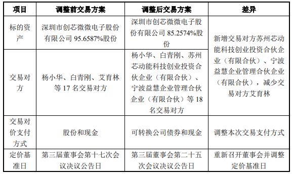 因芯动能投资、宁波益慧加入本次交易,艾育林退出本次交易,交易对方为杨小华、白青刚、顾成标、朱袁正、创芯信息、创芯科技、创芯技术、东莞勤合、深创投、红土一号、宁波芯可智、盛宇投资、南京俱成、苏州华业、创东方投资、龙岗金腾、芯动能投资、宁波益慧18名交易对方。