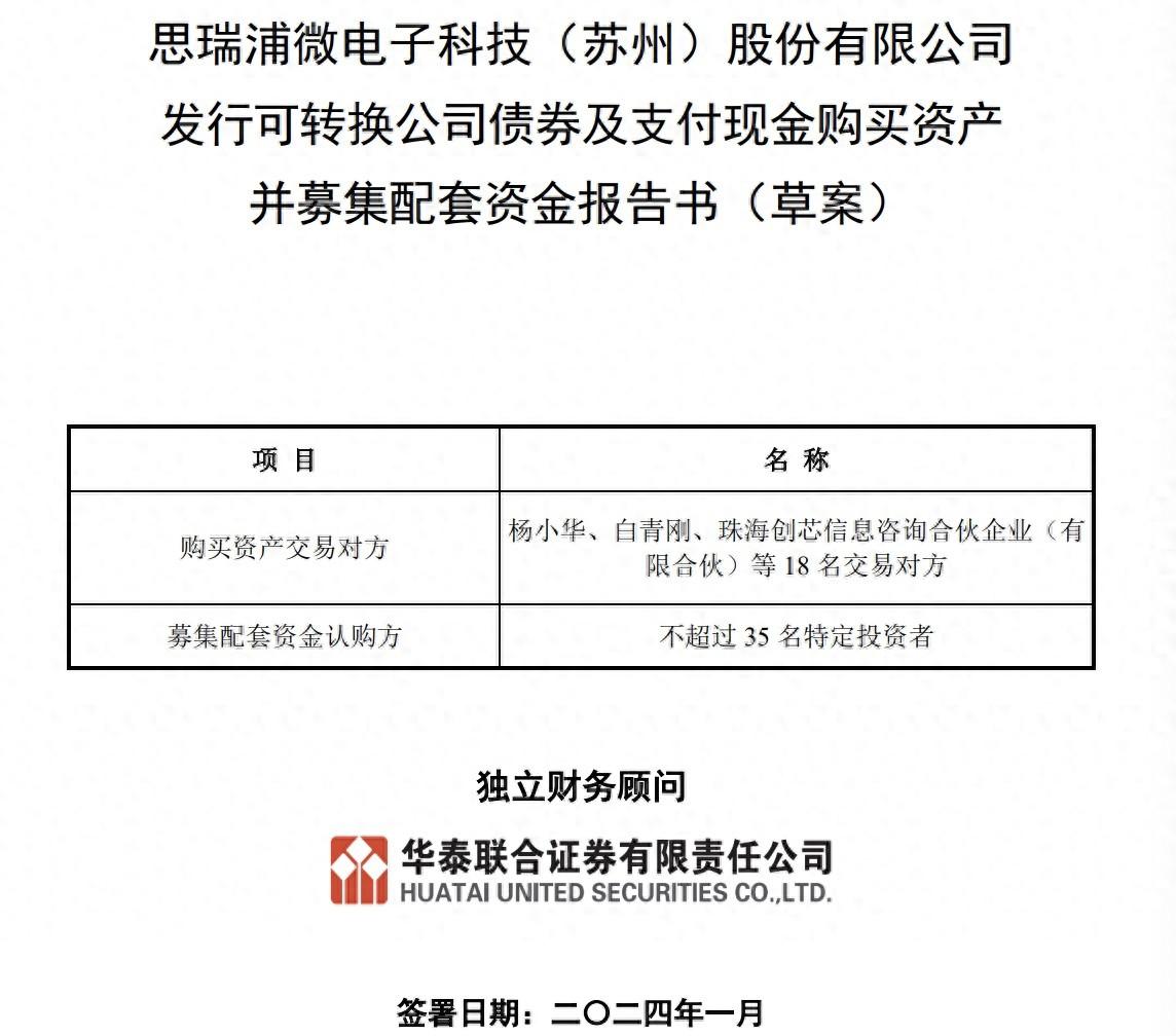 界面新闻注意到,近日,沪市上市公司思瑞浦公告了发行可转换公司债券及支付现金购买资产并发行股票募集配套资金报告书。