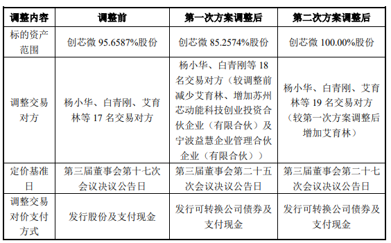 此前,思瑞浦拟通过发行可转换公司债券以及支付现金的方式向交易对方购买其持有的创芯微 85.26%股份。此次重组方案调整后,思瑞浦拟收购创芯微100%股份,交易价格为10.6亿元。