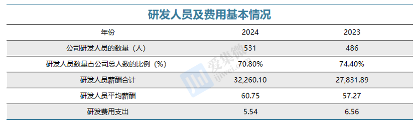 无论是库存高水位表现还有净利率的大幅下滑都表明,思瑞浦当前的经营困境都不容小觑,市场需求疲软、产品价格下降、成本上升都是公司不得不面对的问题。当前,研发费用虽然出现了一定程度的下调,但整体依然维持在5.54亿的高水平。而在公司人员管理方面,研发人员的平均薪酬也进一步提升到了3.2万元,以期推动公司的技术进步和产品升级。