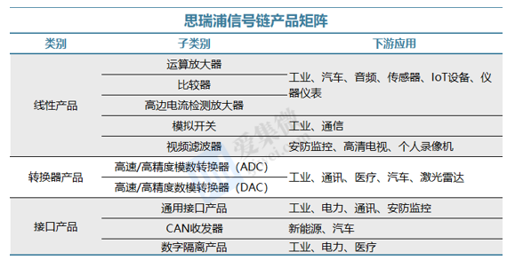 2024年1月23日,科创板上市的模拟芯片龙头思瑞浦发布公告,收购创芯微85.26%股份方案尘埃落定给新一轮的模拟芯片并购树立了标杆。思瑞浦作为模拟芯片龙头之一,以信号链和电源模拟芯片为主,下游应用主要是通讯、工业、新能源汽车等,此次收购创芯微,对思瑞浦的产品布局带来直接补充,进而助力公司向平台型、综合型模拟芯片厂商不断迈进。