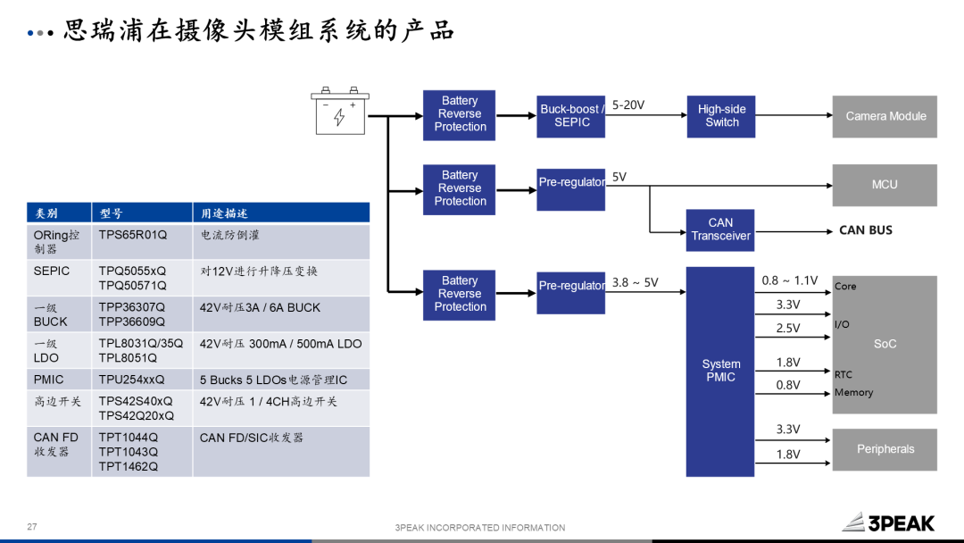 面对上述挑战,思瑞浦在车载摄像头供电上拥有丰富的经验和先进的技术,提供了一系列创新且完整的电源管理方案。