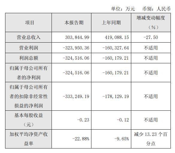 和辉光电昨晚发布2023年度业绩快报公告。报告期内,公司实现营业总收入303,844.99万元,较上年同期减少27.50%。报告期内,公司归属于母公司所有者的净利润及归属于母公司所有者的扣除非经常性损益的净利润为负数,较上年同期减少幅度高于50%,其中归属于母公司所有者的净利润-324,516.06万元,较上年同期亏损增加164,336.85万元;归属于母公司所有者的扣除非经常性损益的净利润-333,249.19万元,较上年同期亏损增加155,120.00万元。