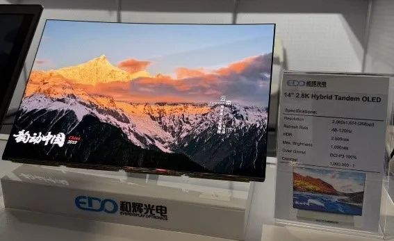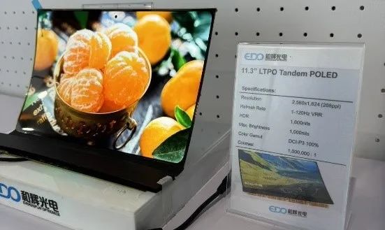 和辉光电还展出了业内首款14寸2.8K刀锋+叠层OLED笔电用AMOLED显示屏备受关注,该产品创新性的采用超薄玻璃搭配薄膜封装技术,使得产品厚度和重量均降低了60%,满足用户对极致轻薄的需求;搭载了高亮度、低功耗、长寿命的叠层OLED显示技术,可赋予移动办公更高效能;同时还支持48~120HZ动态变频护眼显示,使画面更加流畅顺滑,为用户提供更加舒适和“睛彩”的使用体验。