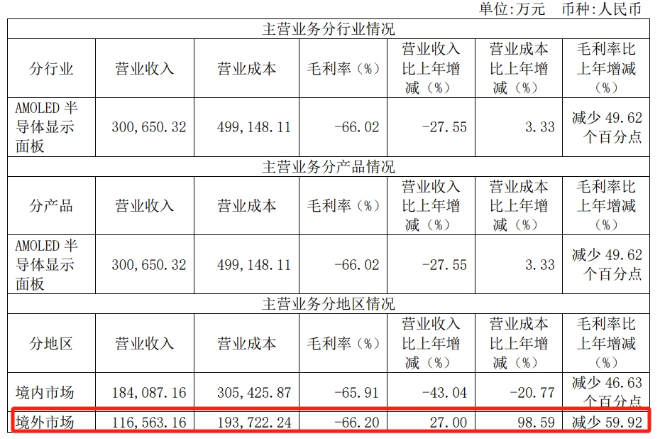 不仅如此,和辉光电主营业务毛利率长期为负,2021-2023年分别为-13.05%、-16.40%和-66.02%。