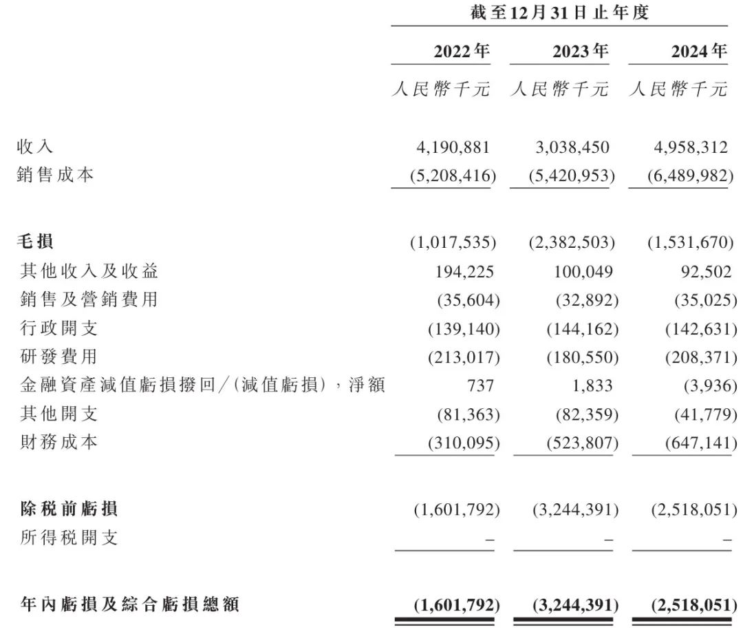 招股书显示,和辉光电2022年、2023年、2024年营收分别为41.91亿元、30.39亿、49.58亿;毛亏损分别为10.18亿元、23.83亿元、15.32亿元。