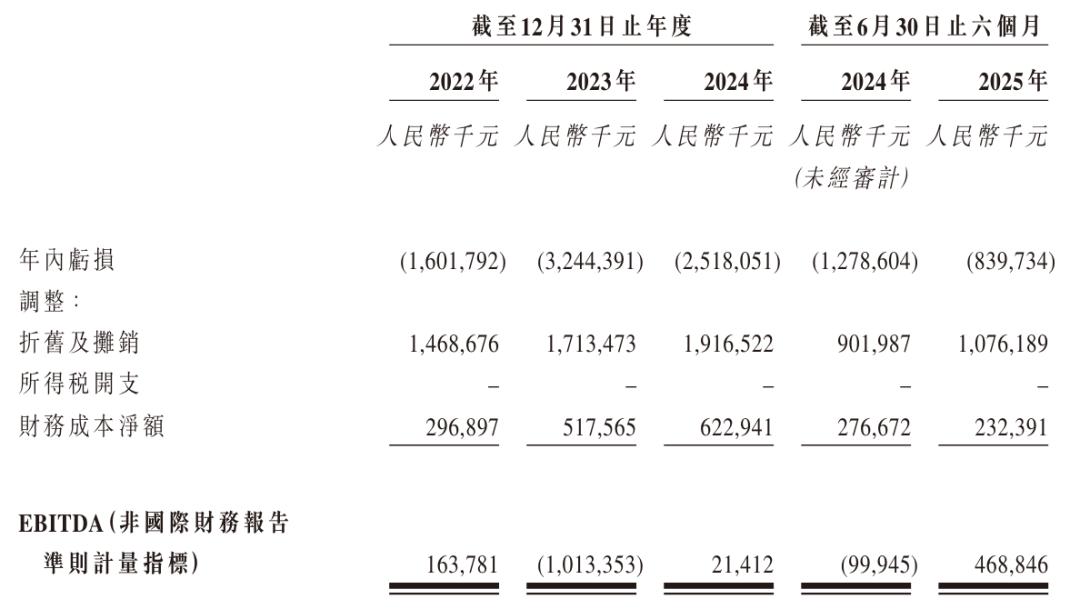 和辉光电2022年、2023年、2024年EBITDA分别为1.64亿元、-10亿元、2141万元;2025年上半年EBITDA为4.69亿元,上年同期为-9995万元。