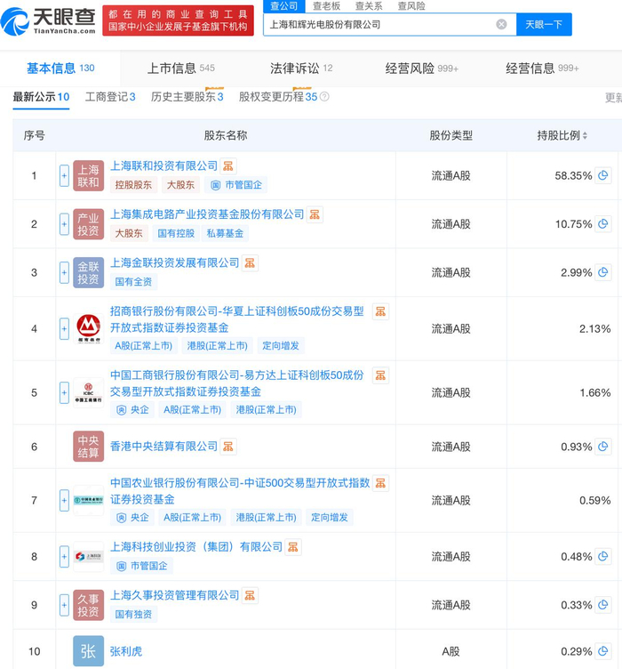天眼查App信息显示,和辉光电成立于2012年10月。目前,该公司的注册资本约为138.09亿元,法定代表人为傅文彪,主要股东包括上海联和、集成电路基金公司、上海金联、上海科技创业投资(集团)有限公司(简称“科创投”)等。