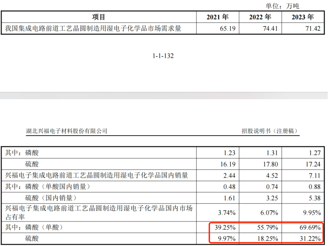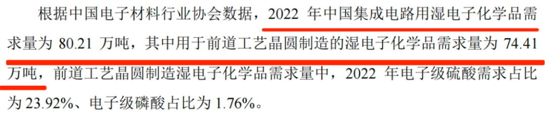 具体来看,2021年、2022年、2023年,公司集成电路前道工艺晶圆制造用电子级磷酸(单酸)国内市占率分别为39.3%、55.8%和69.7%!