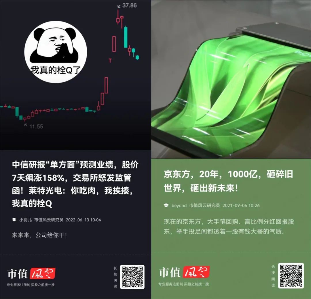 比如京东方A(000725.SZ)《京东方,20年,1000亿,砸碎旧世界,砸出新未来!》。