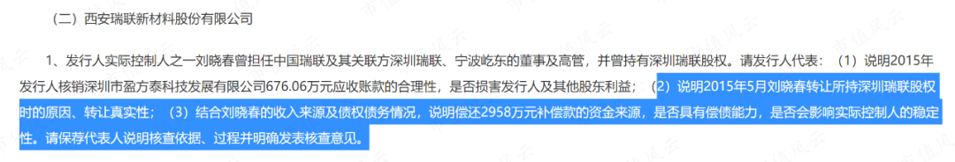 创业板发审委还询问了刘晓春偿还2958万元补偿款的资金来源。