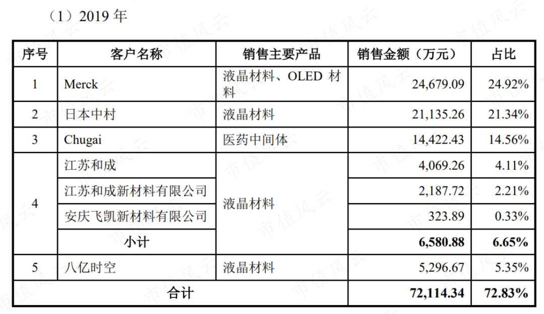 公司各业务的客户主要为海外的大型企业,包括德国默克、JNC(日本中村是JNC的代理采购商)、Chugai等。