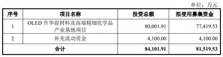 瑞联新材同日公告,拟向开投集团定增募资不超过8.15亿元,用于OLED升华前材料及高端精细化学品产业基地项目和补充流动资金。